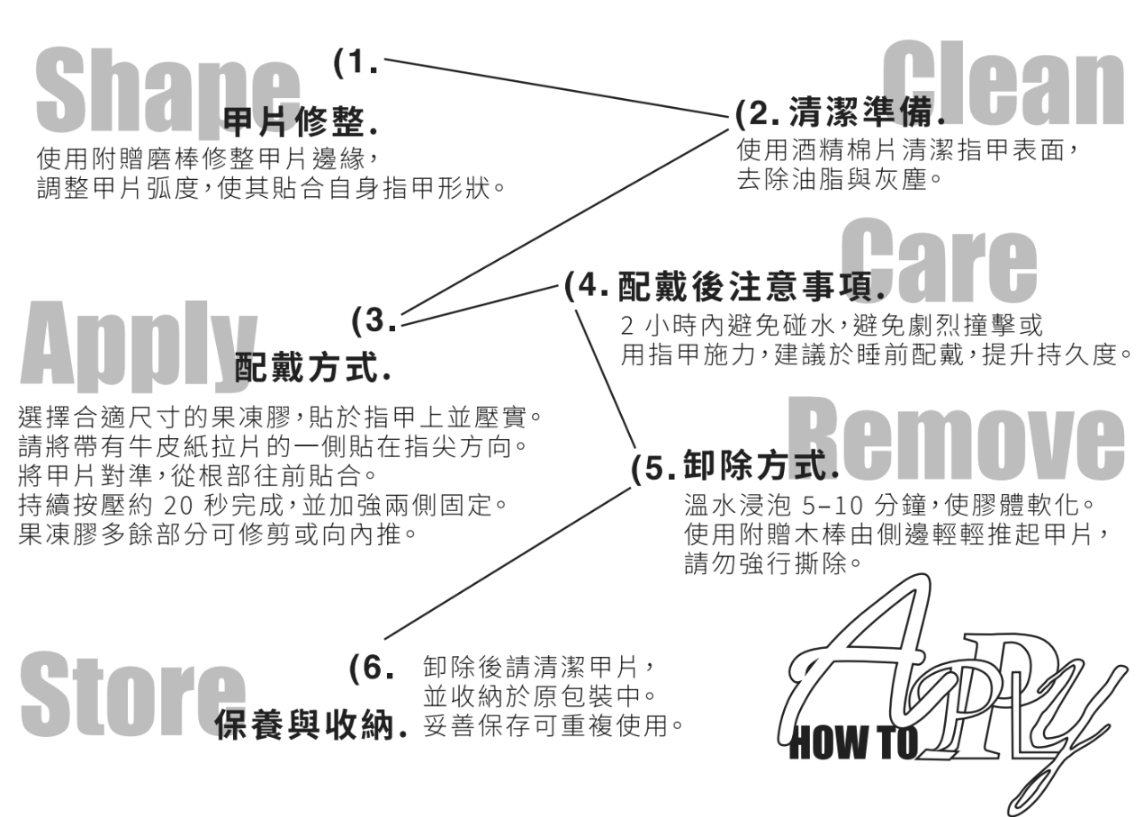 每組皆附贈專用挫刀,可依個人指型修整甲片邊緣,貼合指甲弧度。